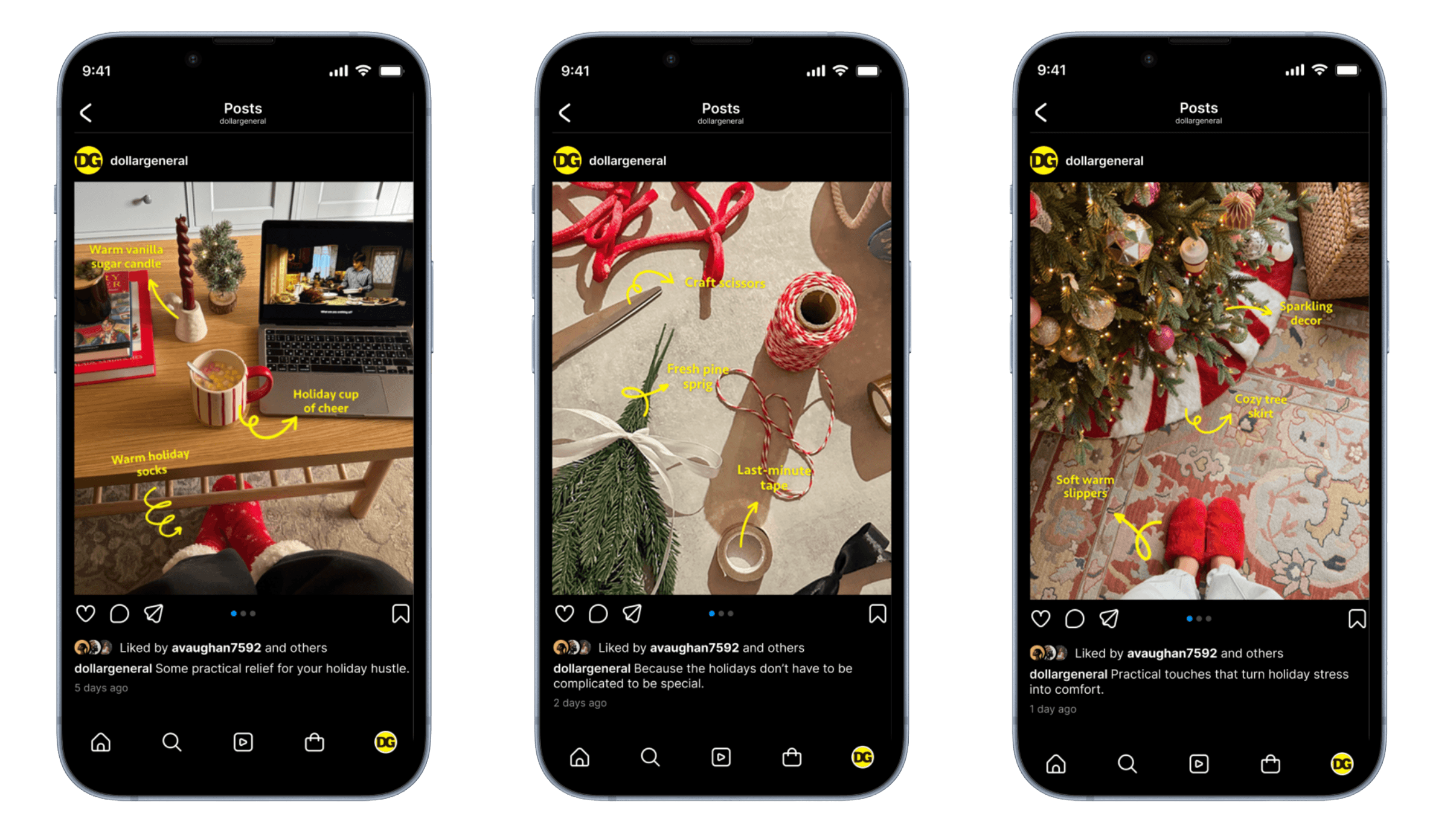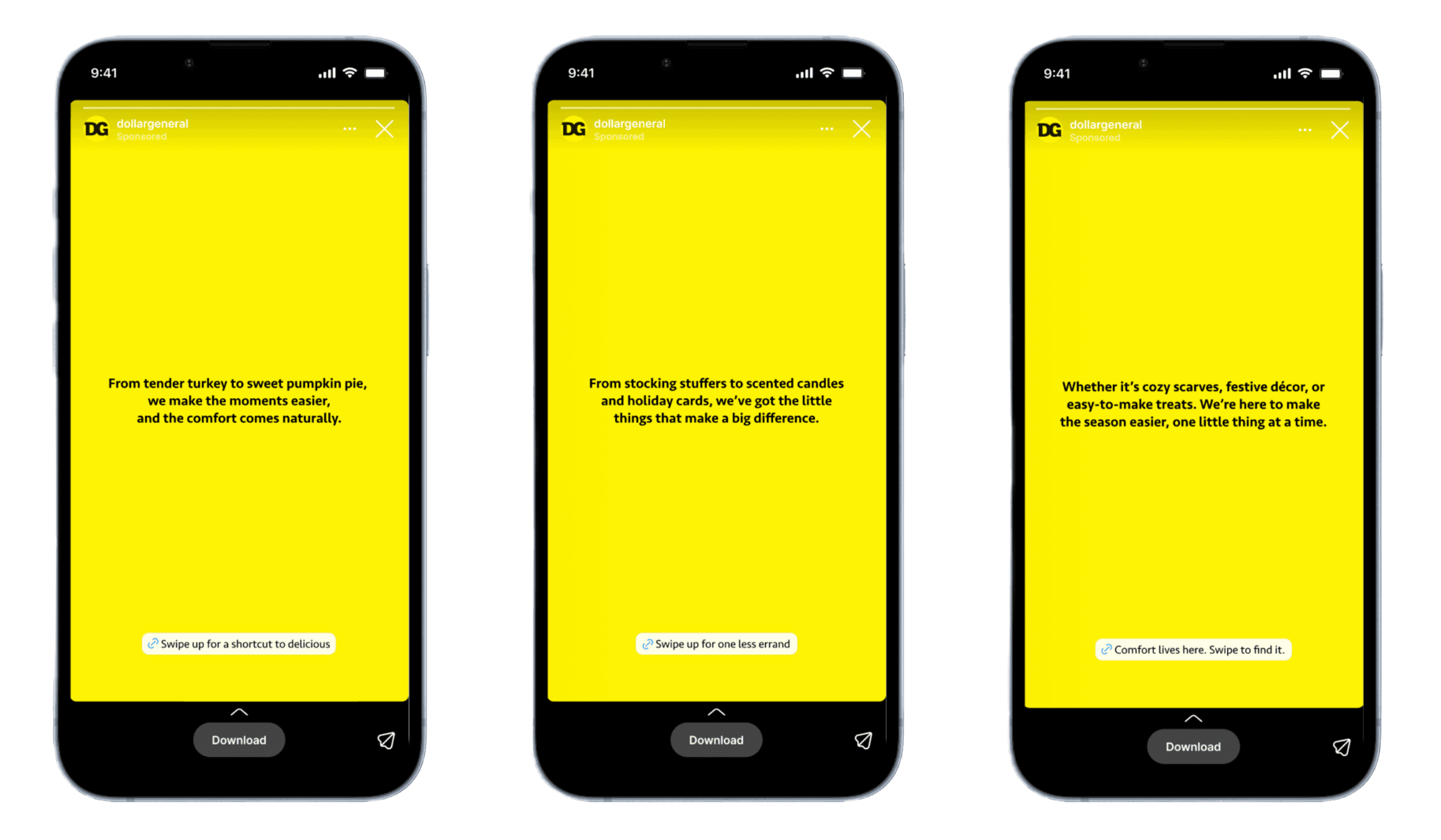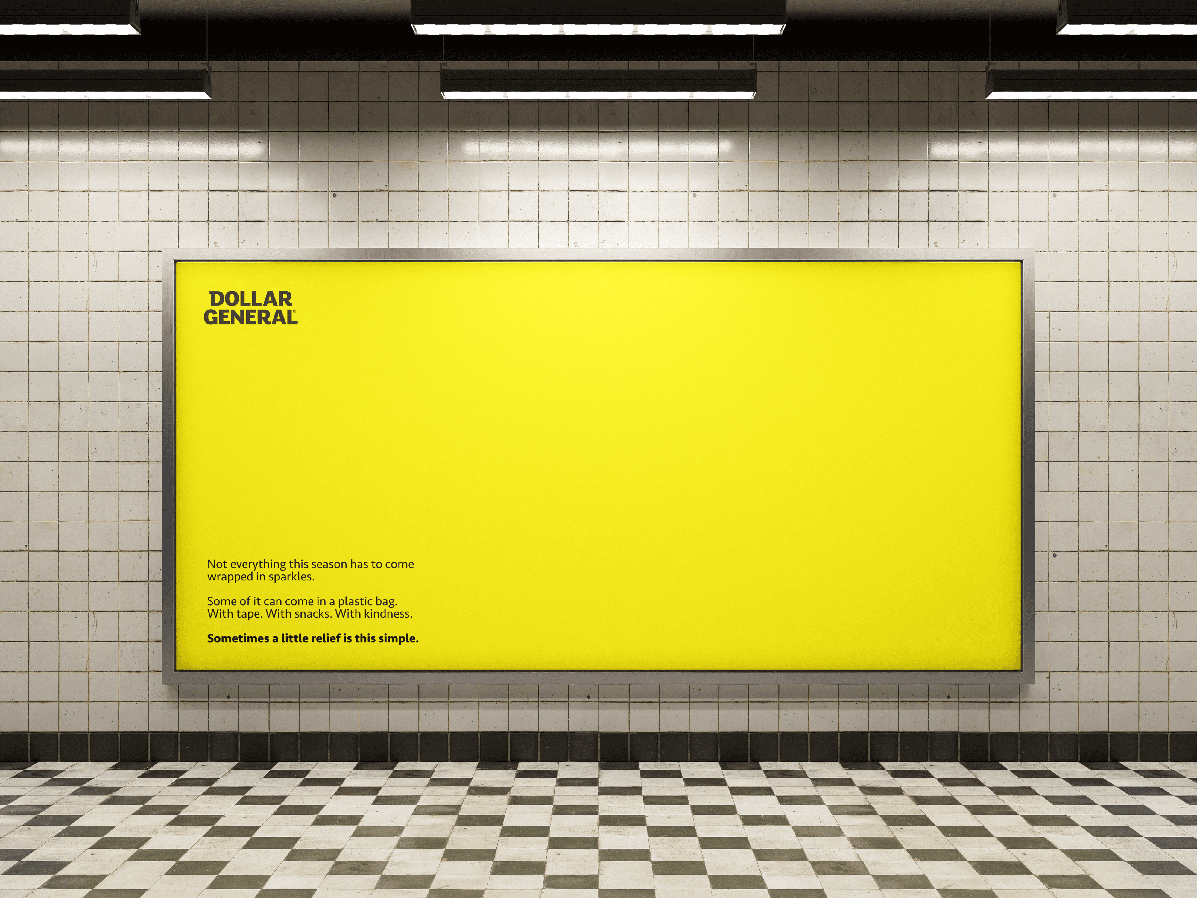 the idea: yellow signals relief, not just happiness. Dollar General yellow becomes the exhale moment of the season.