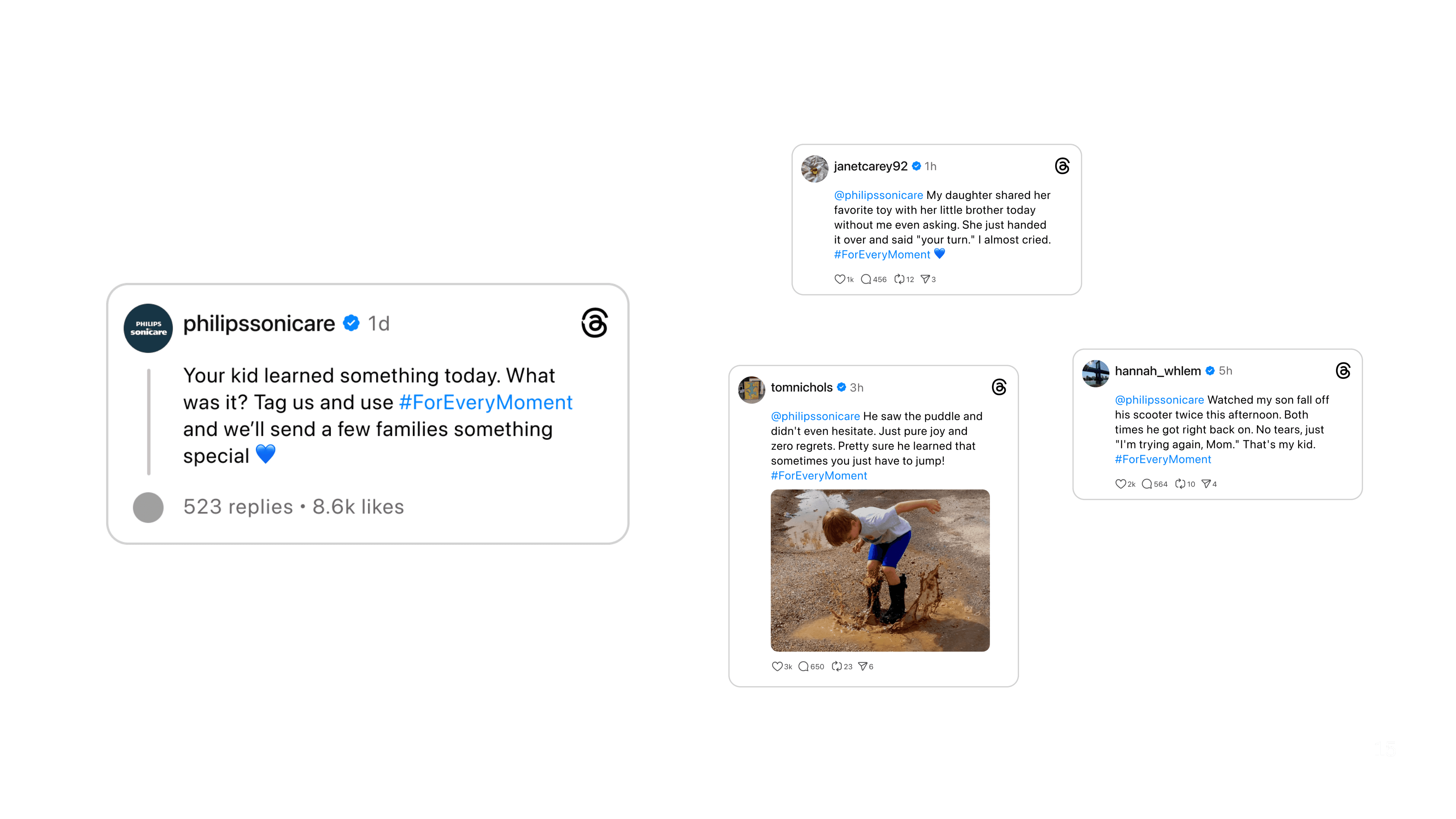 guided by the in-app character sparkly, each prompt encourages reflection on the day while reinforcing healthy habits and consistency. select families who engage with sonicare’s threads post will also receive journals, extending the activation and building community.